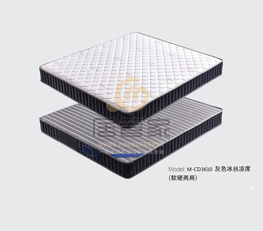 名称: 软床垫 单位风格: 3D冰丝凉席 冬夏两面用 规格尺寸:mm 1.8米 材质: 高档3D冰丝凉席+2公分天然椰棕+200克PK棉+22排中芯弹簧+环保硬质棉2张+高档山羊绒棉面料(23公分软硬两用)