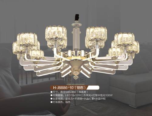 亚克力+不锈钢+水晶灯罩+水晶中柱