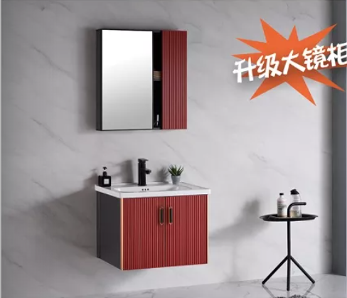 产品:浴室柜 材质:全铝 颜色:活力红 单位:套 尺寸:主柜:605*480*480 镜柜:590*120*650 备注:不含龙头