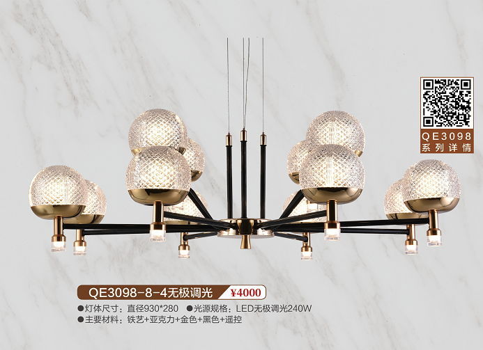 灯体尺寸:直径930*高280 光源规格:LED240W无极调光 颜色:铁艺+亚克力+金色+黑色+遥控