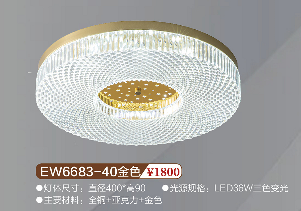 灯体尺寸:直径400*高90 光源规划:LED三色变光36W