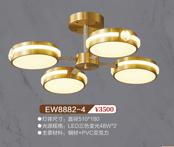灯体尺寸:直径510*180 光源规划:LED三色变光48W*2