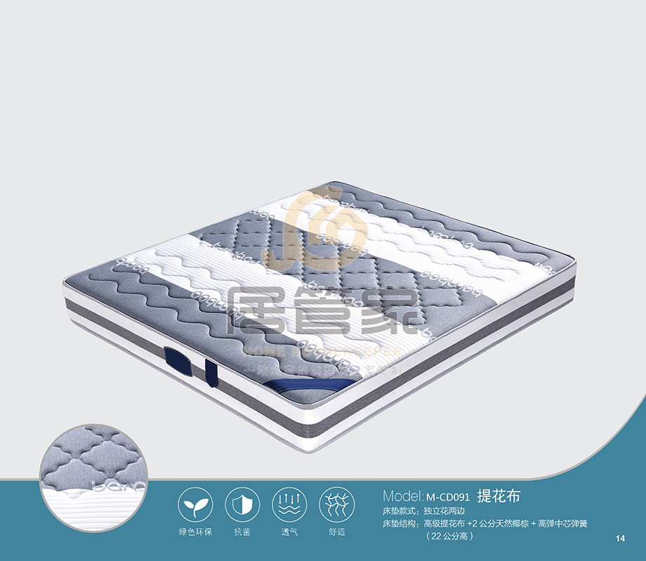 高档提花布面料+2公分天然椰棕+200克pk棉+18排中芯弹簧200克pk棉+高档针织棉料(22公分高)
