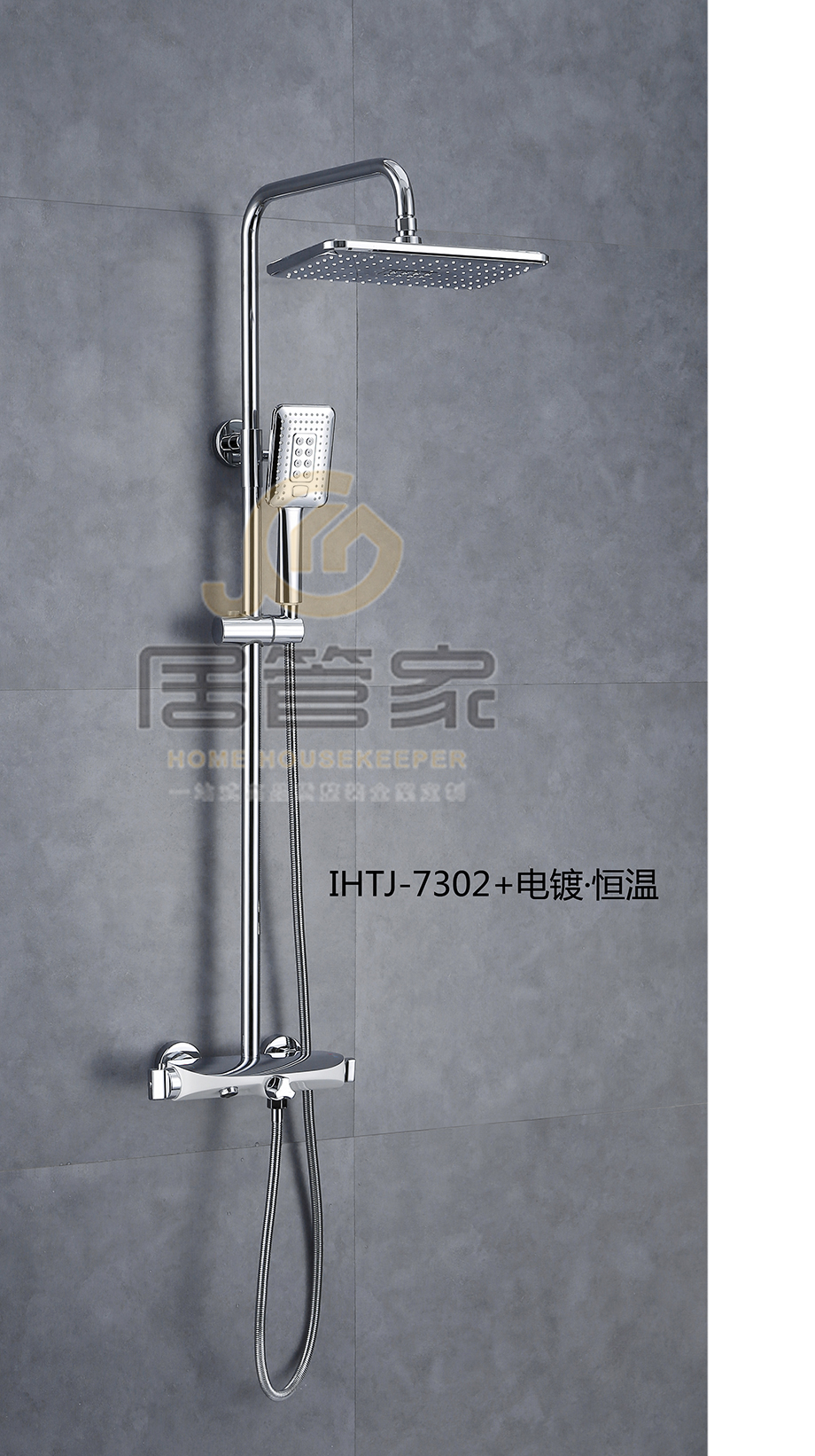 重力铸造,使用国标59A级,环保铜材;表面加厚镀层:8-12um;标配万海阀芯,铜压盖;23x19不锈钢大淋浴管,壁厚1.0mm,全铜固定座;360°旋转双扣软管,外管304不锈钢,EPDM内管ABS塑料顶喷、手持。