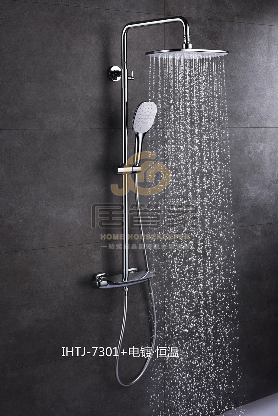 重力铸造,使用国标59A级,环保铜材;表面加厚镀层:8-12um;标配万海阀芯,铜压盖;23x19不锈钢大淋浴管,壁厚1.0mm,全铜固定座;360°旋转双扣软管,外管304不锈钢,EPDM内管ABS塑料顶喷、手持。