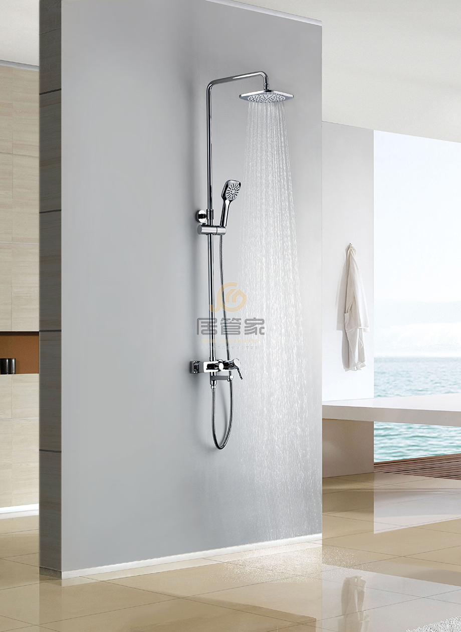 花洒 IHTJ-5015 花洒参数配置: ① 重力铸造,使用国标59A级,环保铜材; ② 表面加厚镀层:8-12um; ③ 标配万海阀芯,铜压盖; ④ 23x19铜大淋浴管,壁厚1.0mm,全铜固定座; ⑤ 360°旋转双扣软管,外管304不锈钢,EPDM内管 ⑥ 全铜顶喷、手持。