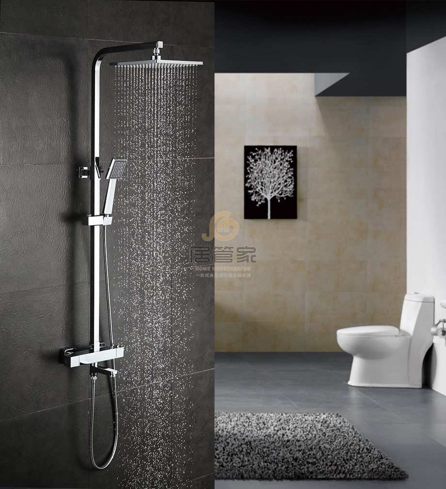 花洒 IHTJ-23A93恒温 花洒参数配置: ① 重力铸造,使用国标59A级,环保铜材; ② 表面加厚镀层:8-12um; ③ 标配万海阀芯,铜压盖; ④ 23x19铜大淋浴管,壁厚1.0mm,全铜固定座; ⑤ 360°旋转双扣软管,外管304不锈钢,EPDM内管 ⑥ 全铜顶喷、手持。