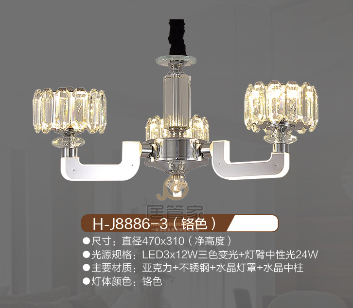 亚克力+不锈钢+水晶灯罩+水晶中柱