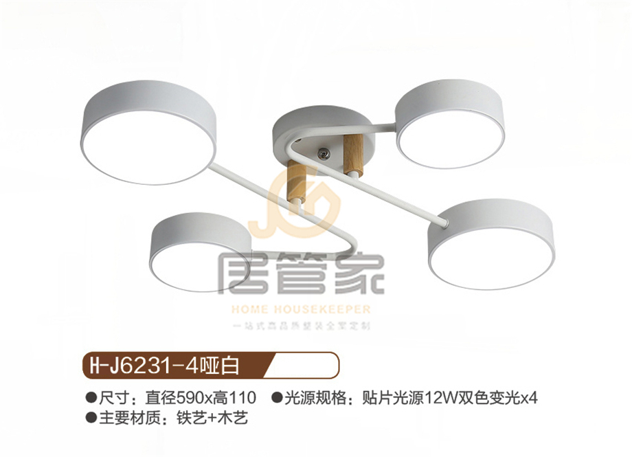 木头吊灯H-J6231-4哑白