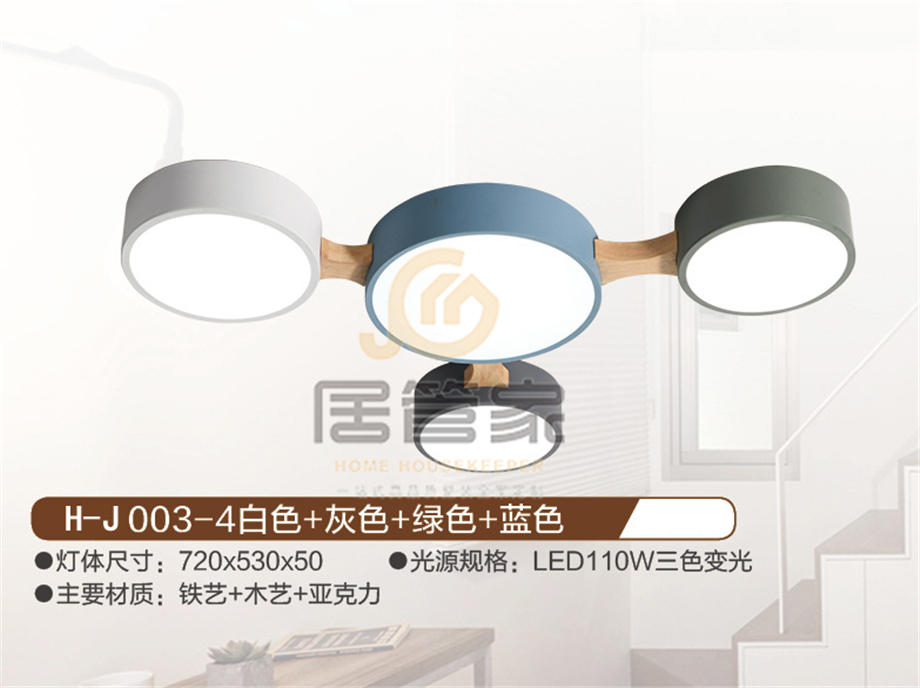 木头吊灯H-J003-4白色+灰色+绿色+蓝色