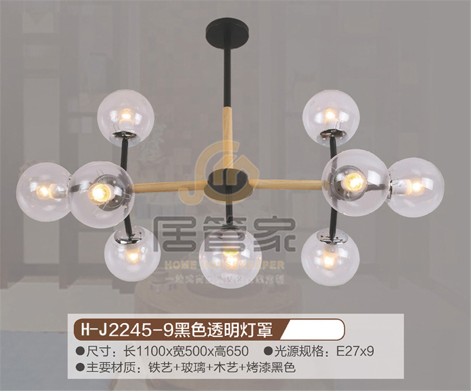 木头吊灯H-J2245-9黑色透明灯罩