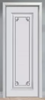 实木复合烤漆门(镶嵌叉色) 尺寸mm:2100*900*300 工艺:平板洗槽、雕刻黑色油漆描水线 工艺材质:实木复合:门扇两侧为8mm高密度板,中间杂木填充至半实心;门套两侧为3mm高密度板,中间杂木填充至实心 备注:含铰链和门吸;不含门锁(不含特殊工艺)