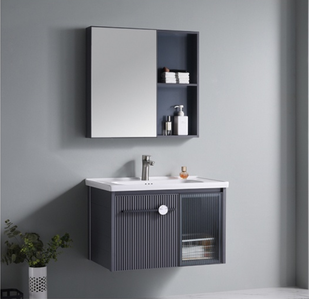 产品:浴室柜 材质:全铝+极简门 颜色:平光灰 单位:套 尺寸:主柜:705*480*480 镜柜:690*120*650 备注:不含龙头