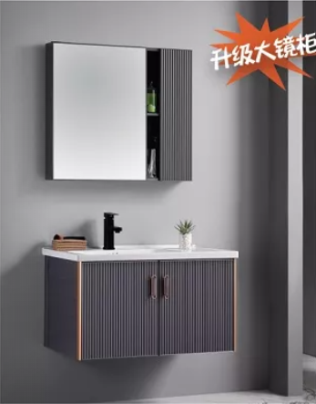 产品:浴室柜 材质:全铝 颜色:平光灰 单位:套 尺寸:主柜:805*480*480 镜柜:780*120*650 备注:不含龙头