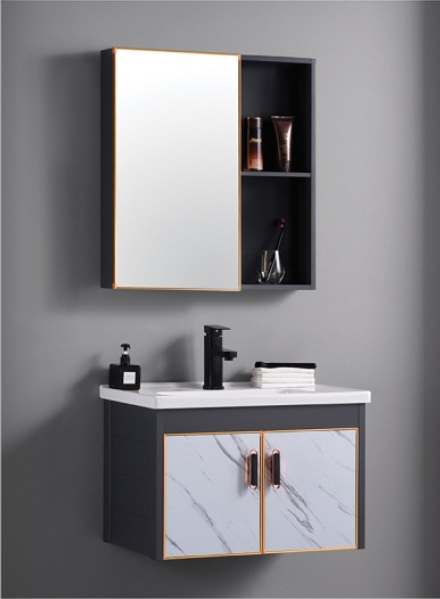 产品:浴室柜 材质:全铝 颜色:鱼肚白 单位:套 尺寸:主柜:605*480*480 镜柜:590*120*650 备注:不含龙头
