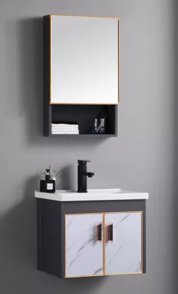 产品:浴室柜 材质:全铝 颜色:鱼肚白 单位:套 尺寸:主柜:505*400*430 镜柜:400*120*650 备注:不含龙头