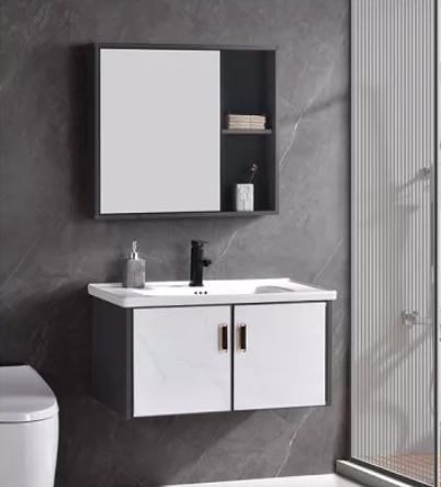 产品:浴室柜 材质:全铝 单位:套 尺寸:主柜:805*480*430 镜柜:720*120*650 备注:不含龙头