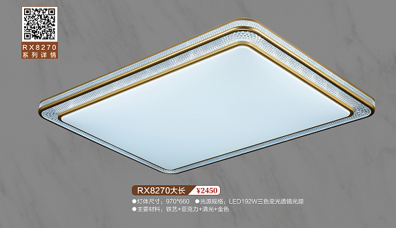 灯体尺寸:970*660 光源规格:LED192W三色变光透镜光源 主要材料:铁艺+亚克力+清光+金色