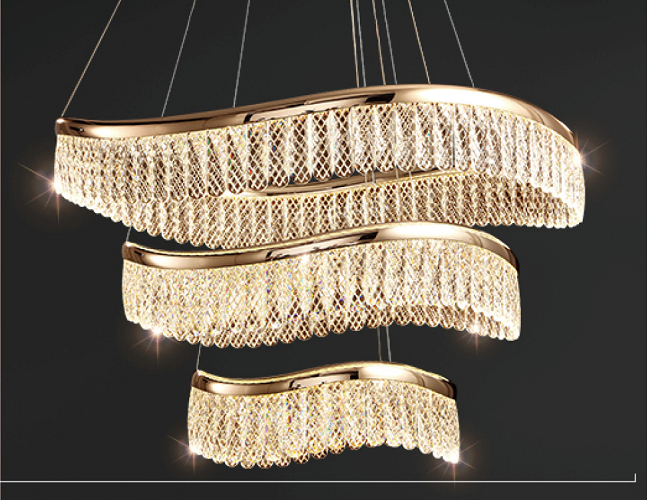 灯体尺寸:直径800*高1200可调 光源规格:LED180W三色变光 颜色:S金+铁艺+铝材+K9水晶