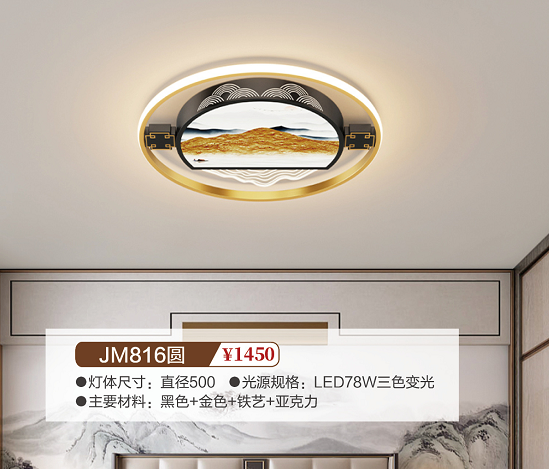 灯体尺寸:直径500 光源规划:LED78W三色变光