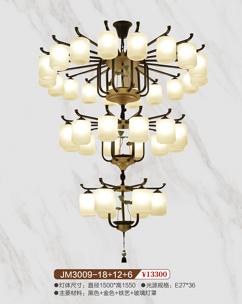 JM3009-18+12+6新中式铁艺吊灯