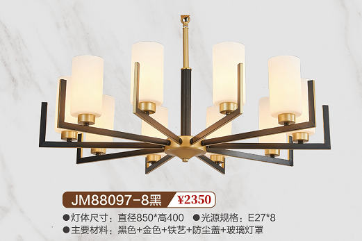 JM88097-8黑新中式铁艺吊灯