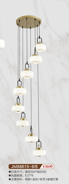 灯体尺寸:直径350*线2000 光源规划:E27*8