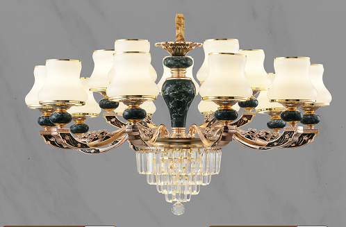 灯体尺寸:直径930*高600 光源规划:E27*15+底托LED三色变光 材质:锌合金+水晶+玻璃 颜色:电镀