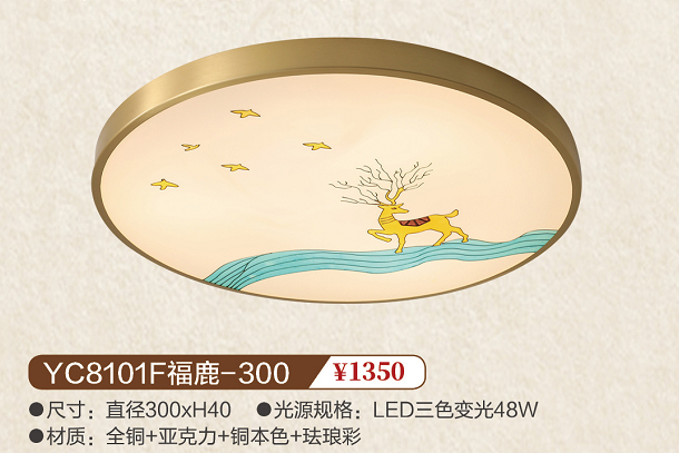 灯体尺寸:直径300*H40 光源规划:LED三色变光48W