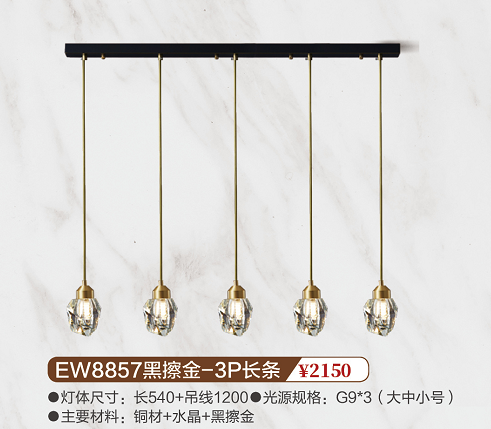 灯体尺寸:长540+吊线1200 光源规划:G9*3
