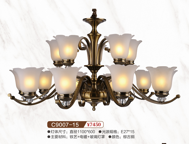 材质:铁艺+电镀+玻璃灯罩 颜色棕古铜