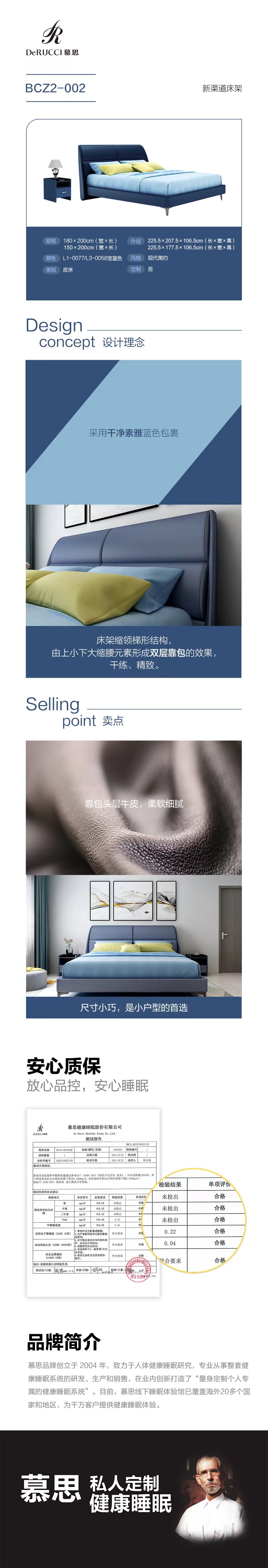 床架搭配饱满高回弹海绵靠包,让背部有非常舒适放松感;而且靠包角度控制在符合人体工程学设计,更好的承托贴合身体曲线.拥有饱满高回弹海绵靠包,像我们工作了一天后都会带着疲惫休息,舒适的靠包可以让身体舒适放松感,释放工作的压力,也可以更好呵护我们脊椎的健康。设计小巧整体床架由上小下大缩腰元素形成双层靠包的效果,在视觉中不会影响头重尾轻、干练、精致,有一定的舒适感和很强的整体性。床身材质搭配皮质用料,触摸更舒适。易于清洁床身尺寸小巧而配合,配以黑色五金高脚,方便床下清洁,同时使其显得高挑又时尚。